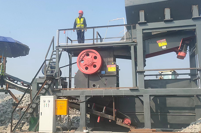 電動(dòng)機(jī)驅(qū)動(dòng)皮帶和皮帶輪,通過偏心軸使動(dòng)顎上下運(yùn)動(dòng),當(dāng)動(dòng)顎上升時(shí),肘板與動(dòng)顎間夾角變大,從而推動(dòng)動(dòng)顎板向固定顎板接近,與次同時(shí),物料被壓碎或劈碎,達(dá)到破碎的目的;當(dāng)動(dòng)顎下行時(shí),肘板與動(dòng)顎夾角變小,動(dòng)顎板在拉桿、彈簧的作用下,離開固定顎板,此時(shí)已破碎物料從破碎腔下口排出。隨著電動(dòng)機(jī)連續(xù)轉(zhuǎn)動(dòng)而破碎機(jī)動(dòng)顎作周期運(yùn)動(dòng)壓碎和排泄物料,實(shí)現(xiàn)批量生產(chǎn)。