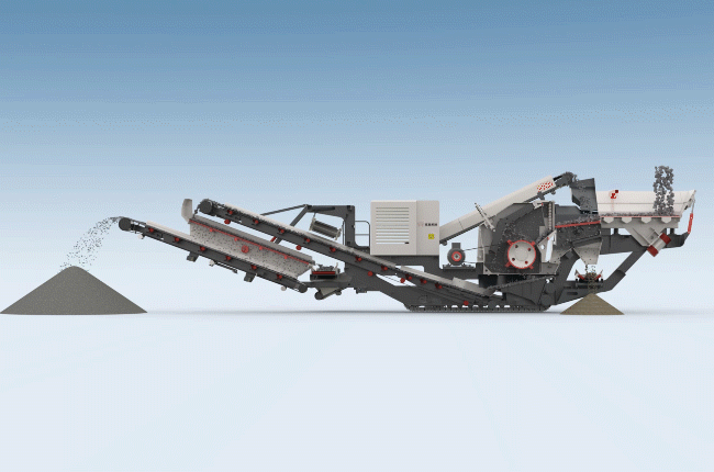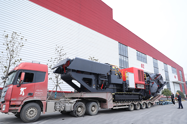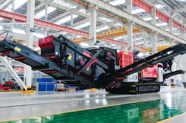 物料經(jīng)給料機(jī)均勻輸送到顎式破碎機(jī)內(nèi),經(jīng)顎式破碎機(jī)初破后的物料經(jīng)輸送機(jī)送入反擊/圓錐破碎機(jī)進(jìn)行二次破碎,破碎出的物料經(jīng)振動(dòng)篩篩分,滿足破碎要求的物料由輸送機(jī)輸出,不滿足要求的物料再次進(jìn)入反擊式破碎機(jī)破碎,整個(gè)履帶式顎式破碎機(jī)+反擊/圓錐移動(dòng)破碎站生產(chǎn)線通過圓振動(dòng)篩構(gòu)成閉路系統(tǒng),實(shí)現(xiàn)物料的循環(huán)破碎,成品物料由輸送機(jī)輸出,進(jìn)行連續(xù)破碎作業(yè)。