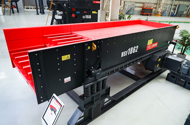 HSF系列重型棒條振動(dòng)給料機(jī),它結(jié)構(gòu)緊湊,抗沖擊力強(qiáng),外置偏心塊設(shè)計(jì)使得給料機(jī)振幅調(diào)整方便快捷,獨(dú)立的耐磨棒條使得棒條間隙可隨意調(diào)整,很大程度優(yōu)化進(jìn)入破碎機(jī)的物料粒度,提高破碎機(jī)產(chǎn)能,降低能耗。