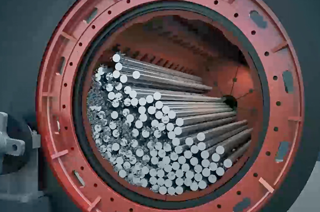 棒磨機(jī)主要用于長石,石英和鵝卵石等礦石材料的加工和破碎。鋼棒隨磨機(jī)旋轉(zhuǎn),在摩擦力和離心力的作用下上升到一定的高度并被拋下,使物料持續(xù)受到撞擊形成制砂。