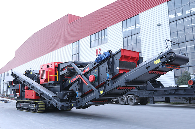物料經(jīng)給料機(jī)均勻輸送到顎式破碎機(jī)內(nèi),經(jīng)顎式破碎機(jī)初破后的物料經(jīng)輸送機(jī)送入反擊/圓錐破碎機(jī)進(jìn)行二次破碎,破碎出的物料經(jīng)振動(dòng)篩篩分,滿足破碎要求的物料由輸送機(jī)輸出,不滿足要求的物料再次進(jìn)入反擊式破碎機(jī)破碎,整個(gè)履帶式顎式破碎機(jī)+反擊/圓錐移動(dòng)破碎站生產(chǎn)線通過圓振動(dòng)篩構(gòu)成閉路系統(tǒng),實(shí)現(xiàn)物料的循環(huán)破碎,成品物料由輸送機(jī)輸出,進(jìn)行連續(xù)破碎作業(yè)。
